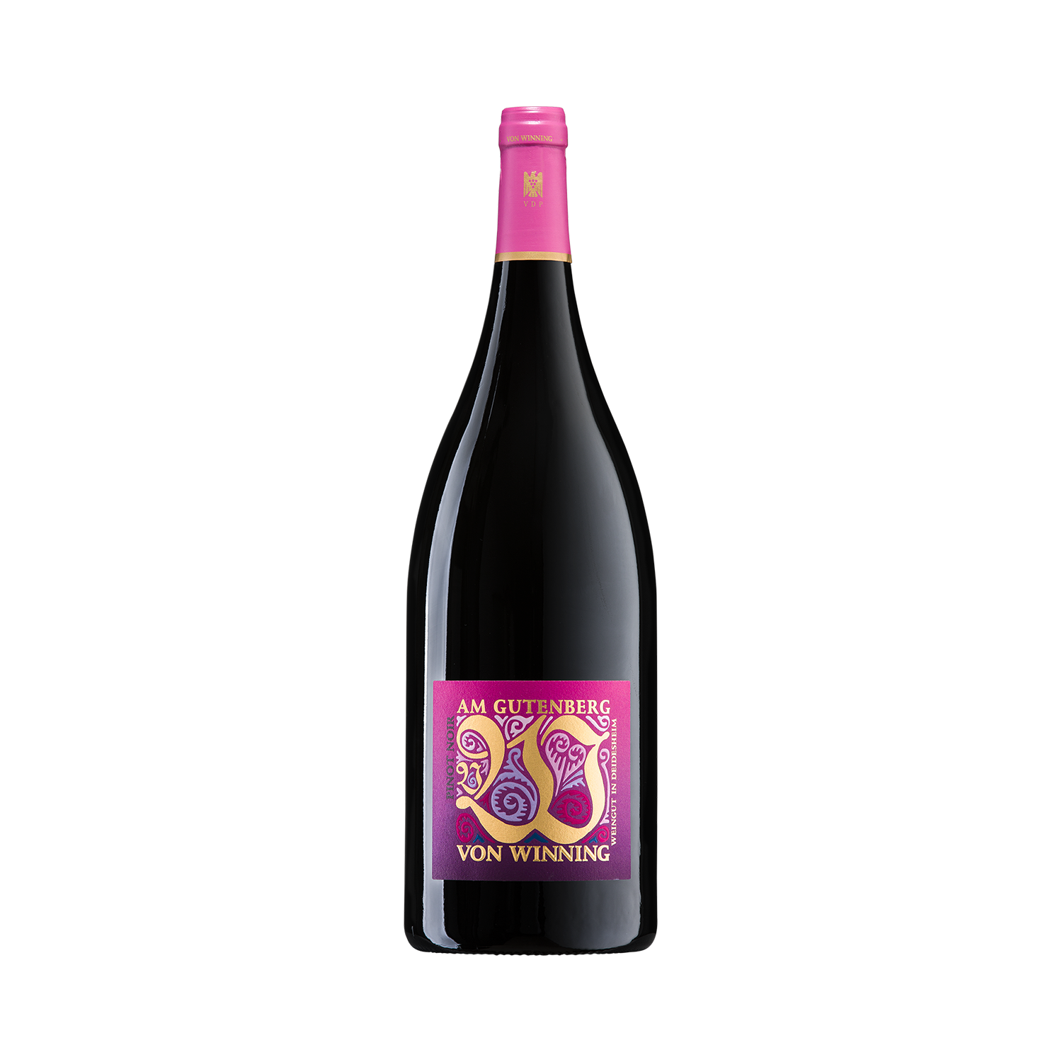 Unser Pinot Noir AM GUTENBERG ist ein altes Deidesheimer Gewann, welches am Rand des Haardtgebirges leicht nach Südosten abfällt. Sandstein und Kieselgeröll vermischen sich mit kalkigem Löss. Hier haben wir eine Selektion besonderer Pinot Varietäten mit burgundischer Herkunft gepflanzt.Intensiver Duft von würziger Sauerkirsche, feinem Holz und eine mystische Tiefe in der Nase, Sauerkirsche, rote Johannisbeere, Thymian und etwas schwarze Oliven am Gaumen. Durch die pikante Säure hat der Wein eine große Spannung, die ihn saftig und salzig zu einem sehr langen Nachhall trägt. Ein großes Pinot Erlebnis!