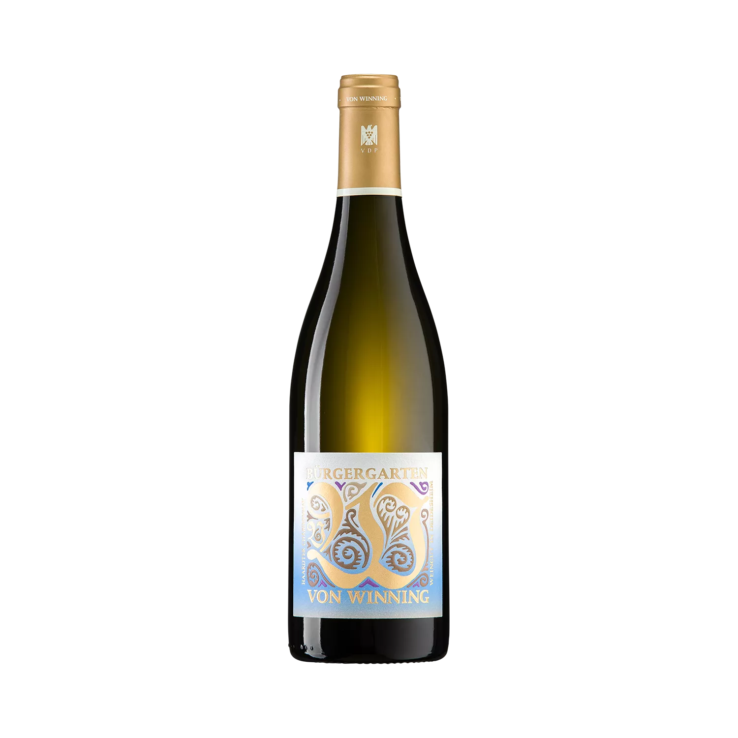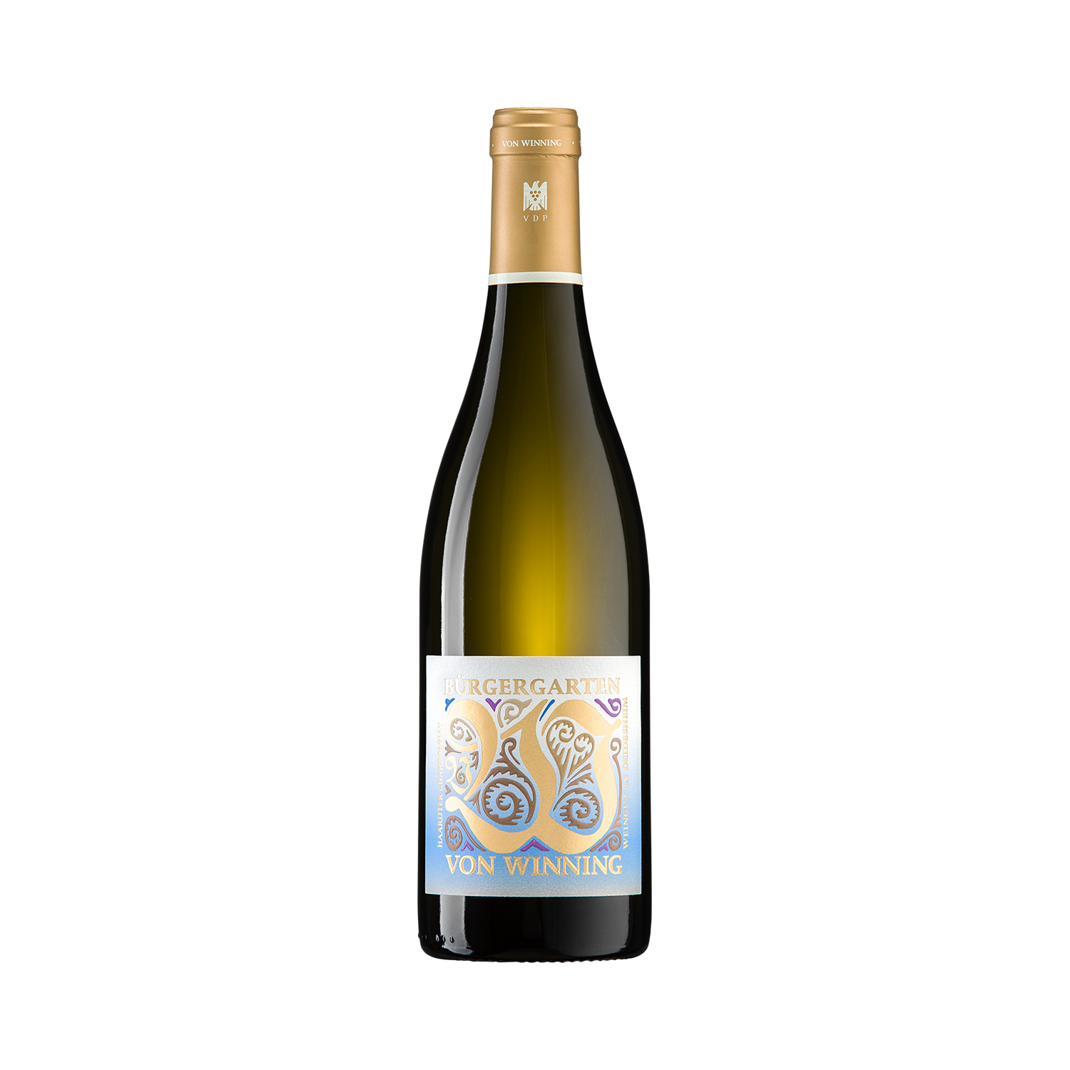 Vom Haardtgebirge geschützt, liegt dieser Weinberg in idealer Südausrichtung. Morgens fängt er die ersten Sonnenstrahlen ein, während der tiefgründige Buntsandstein-Lösslehm-Boden auch in trockenen Jahren für optimale Wasserversorgung sorgt. Der Bürgergarten Chardonnay funkelt mit grün-gelben Reflexen im Glas und spiegelt so bereits optisch seine filigrane Frucht wider. In der Nase entfaltet sich ein schwebender, feiner Maiglöckchenduft, begleitet von frischer Yuzu. Der Holzausbau setzt ihm lediglich einen dezenten Rahmen: helle Röstaromen, dazu eine Spur Feuerstein. Am Gaumen präsentiert er sich differenziert und komplex, ohne laut zu sein, alles steht in Balance. Stilistisch erinnert er eher an Puligny-Montrachet oder Chablis, als an Meursault oder kalifornische Chardonnays. Ein Wein, der sich innerhalb der neuen Lagen-Chardonnays durch seine strahlende Finesse auszeichnet. Der zweite Schluck? Unvermeidlich.