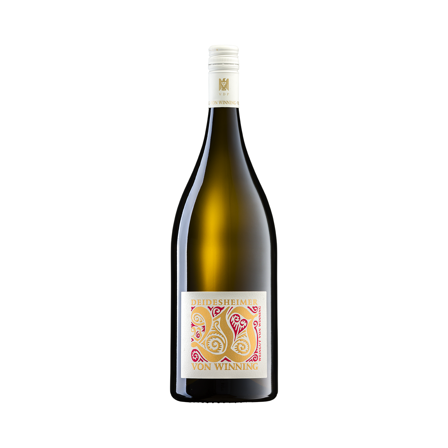 Der Deidesheimer Riesling kommt aus den besten Lagen Deidesheims und gärt zum Großteil im Holz. Er verbindet die Eleganz und Frische der Sandsteinlagen mit dem Druck und der Struktur unseres Stils. Ein Riesling zum Verlieben!