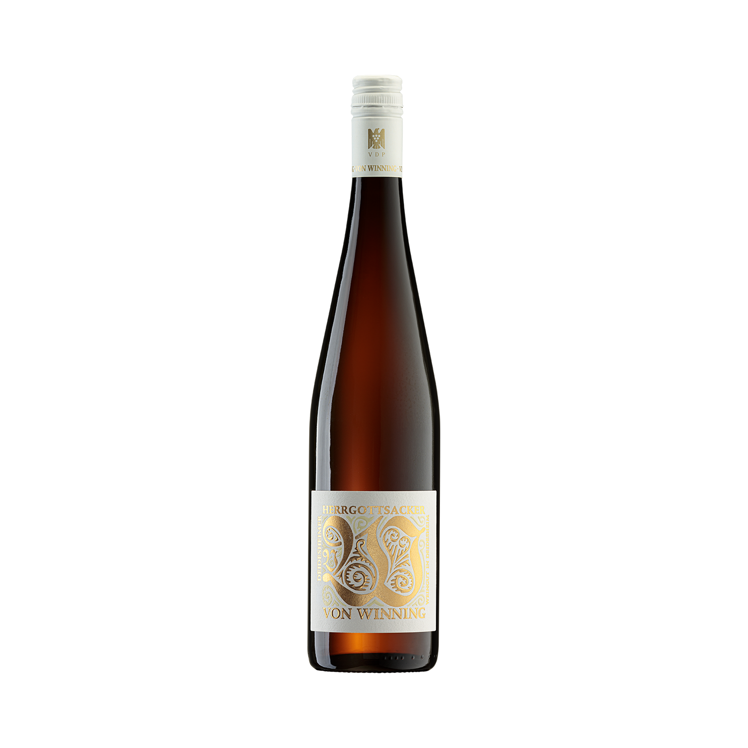 Diese nördlichste Lage Deidesheims grenzt an das Forster UNGEHEUER. Innerhalb dieses Weinbergs weisen die Böden vielfältige Strukturen auf: Buntsandstein, sandiger Lehm, Kalkgeröll und Basalt variieren je nach Lage der Parzelle.Der HERRGOTTSACKER vereint die feinfruchtige Eleganz und kühle Würze von Deidesheim mit der Ausdruckskraft von Forst.Der Ausbau auf der Hefe im großen Doppelstückfass verleiht ihm eine zarte Cremigkeit und trägt die weißen Frucht -und Blütennoten. Frisch-herbe Zitrusaromen und eine straffe, aber reife Säure machen diesen Riesling zu einem feinen Begleiter bei vielen Anlässen.