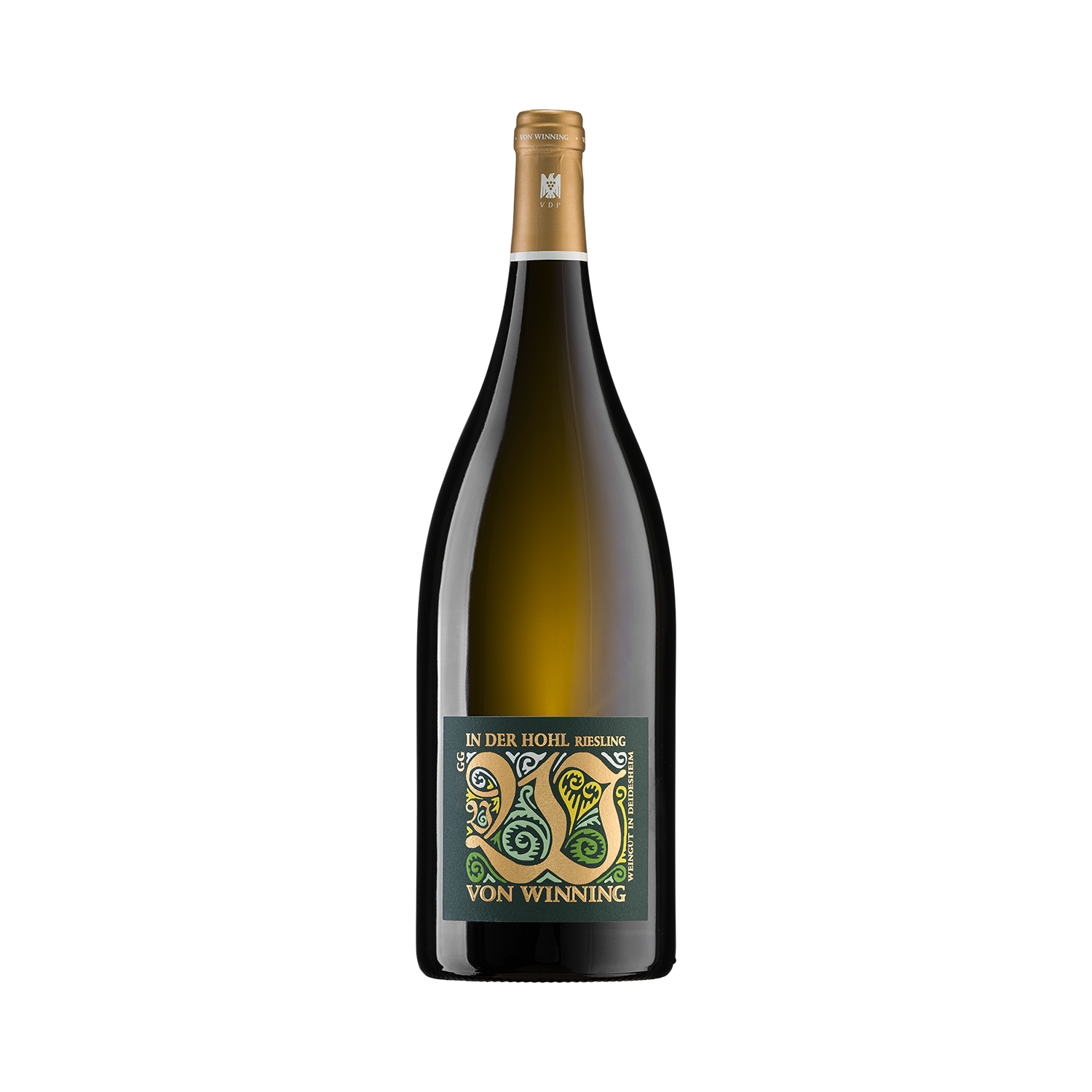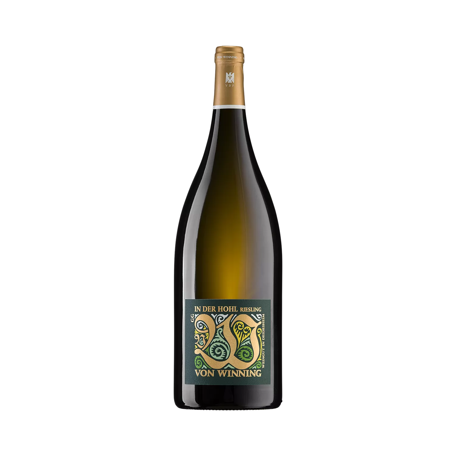 Diese nach Süden ausgerichtete, gut geschütze GROSSE LAGE zählt zu den wärmsten Rieslingstandorten in Ruppertsberg. Die Kombination aus leichten Buntsandsteinböden mit Kalkeinschlüssen und mildem Mikroklima schafft ideale Bedingungen für eine feine, kühle Aromatik bei gleichzeitig hoher physiologischer Reife.Reiterpfad In der Hohl ist schwebend elegant und druckvoll strukturiert zugleich.Im Glas zeigt sich ein helles Duftbild: saftige Birne, kühler Pfirsich und Maiglöckchen, dazu Kräuter wie Estragon, Minze und Waldmeister, die ihm eine ätherische Frische verleihen. Am Gaumen dann straff, mit festem Grip und verspielter Säure. Die Frucht bleibt klar, das Holz schiebt sich in dezenten würzigen Wellen immer wieder an die Oberfläche. Ein kristalliner Rieslingtyp mit feiner Kontur und langem Nachhall.