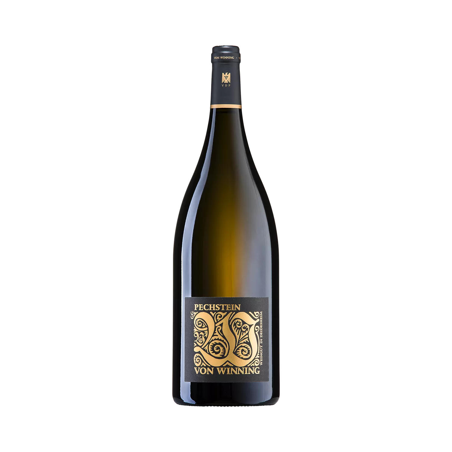 Namensgeber dieser VDP.GROSSEN LAGE sind die für Forst charakteristischen Basaltvorkommen. Der Pechsteinkopf, ein ehemals aktiver Vulkan oberhalb des Ortes, verteilte vor Urzeiten große Mengen von vulkanischem Gestein. Neben roten Buntsandsteinverwitterungen, sandigem Lehm, feinen Tonteilchen und den im Untergrund verlaufenden Basaltadern findet man an der Oberfläche auch lose Basaltsteine aus einem nahgelegenen Steinbruch, die im 19. Jahrhundert zur (damals so üblichen) Bodenverbesserung in die Weinberge eingearbeitet wurden. Diese außergewöhnliche Lage ergibt einen dichten, sehr intensiven Rieslingcharakter.Typisch für PECHSTEIN ist die fast geheimnisvoll aus der Tiefe aufsteigende, würzig-rauchige Feuersteinnote. Dazu tänzelt die Frucht in der Nase: ätherische Zitruszeste, aromatische Kräuter und gelbfruchtige Aprikose. Am Gaumen sehr konzentriert und saftig mit feiner Salzigkeit. Der präzise Säurezug und die griffige Mineralität tragen den PECHSTEIN zu großer Länge.