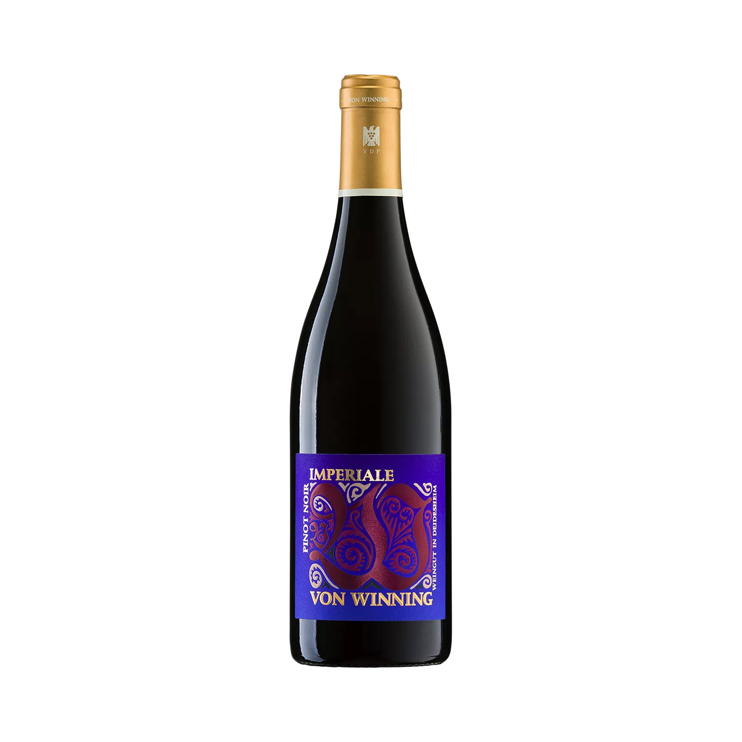 Der Pinot Noir Imperiale ist eine Traubenselektion aus unseren Weinbergen in Deidesheim. Schon in der satten, leuchtenden Farbe mit violetten Reflexen zeigt sich die Dichte und Komplexität des Imperiale. Er duftet herrlich nach Eukalyptus, Sauerkirsche, fein geröstetem Kaffee und Thymian. Am Gaumen sehr saftig und ausladend, mit nobler Extraktsüße, seidig gewobenen Tanninen und feinen Röstaromen, die minutenlang nachhallen. Verführerisch!