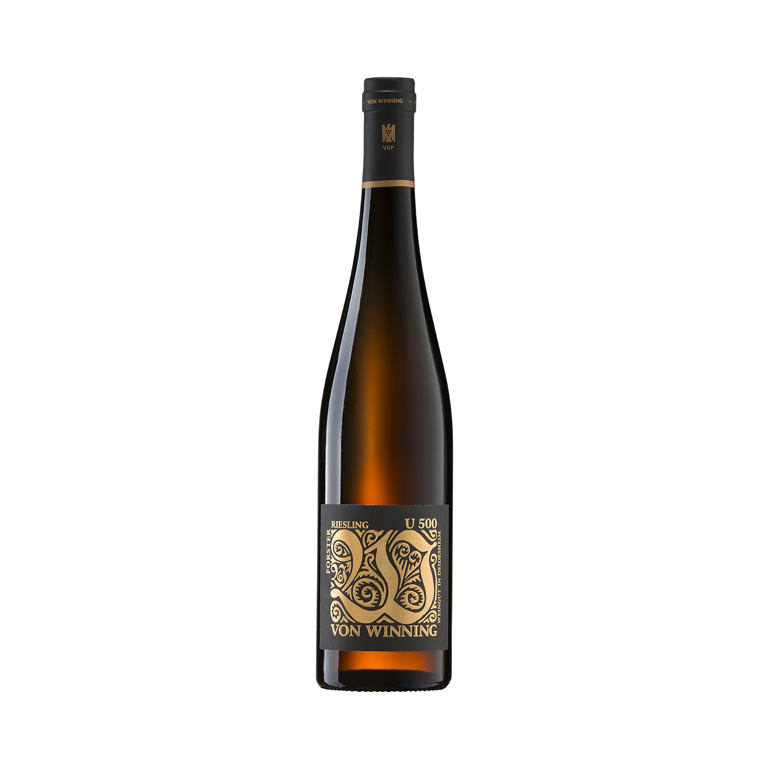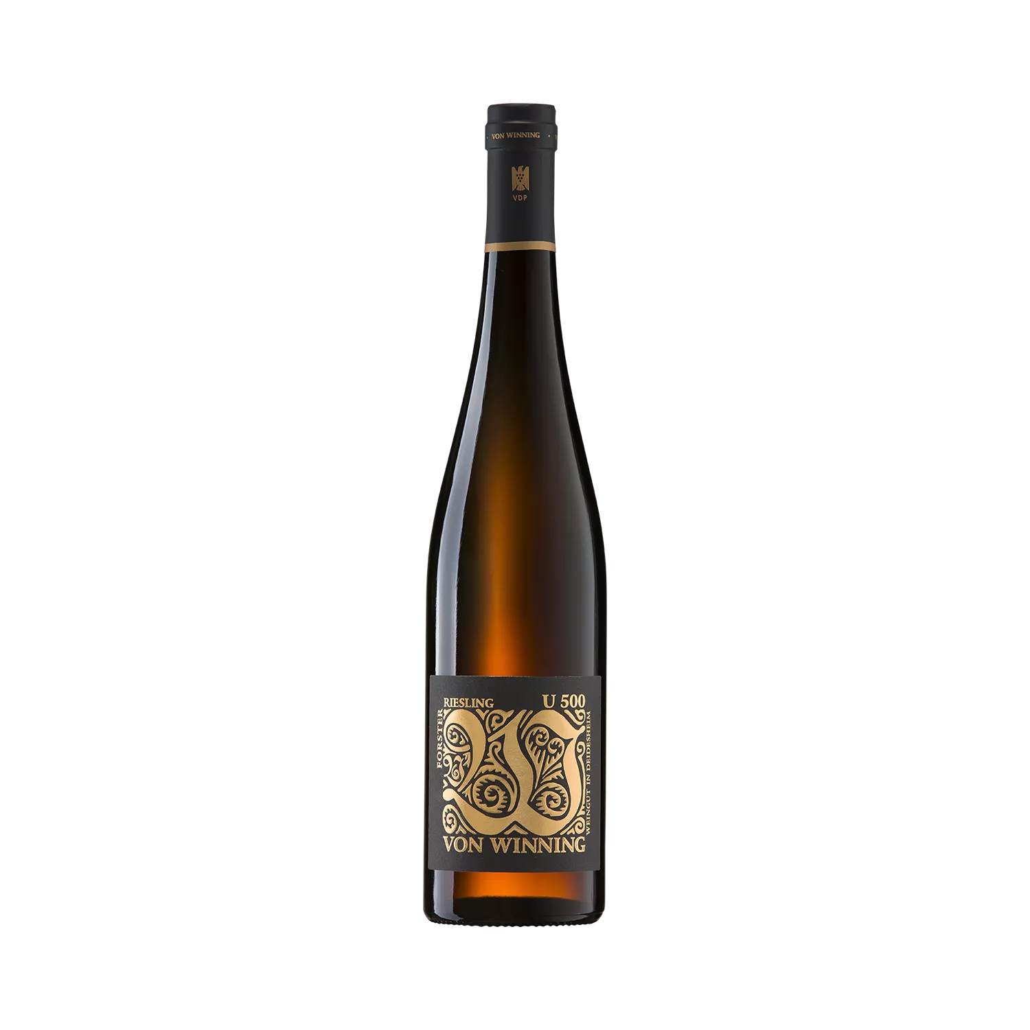 Für den U 500 Riesling stehen uns mehrere charaktervolle Parzellen rund um Forst zur Verfügung, deren unterschiedliche Böden und Expositionen dem Wein eine faszinierende Vielschichtigkeit verleihen. In den meisten Jahrgängen stammt er aus einer besonders markanten Parzelle, in kühleren Jahren ergänzen ihn Partien von höher gelegenen, kalkgeprägten Terrassen.Der U 500 ist eine Selektion aus unseren 500-Liter-Eichenfässern, in denen sich jene Partien wiederfinden, die durch besondere Noblesse und würzige Frucht überzeugen. Ein Kultwein, den es nur in ausgesuchten Jahren gibt.Sein Charakter ist unverkennbar: präsent und grade heraus, stoffig, saftig, satt. Zunächst eröffnet die nussige Würze aus dem Holz, dann schieben opulente Steinobstaromen, feine warme Thymiannoten und der Duft von Orangenblüte nach. Am Gaumen trägt die erfrischende Säure die Spannung weiter und ergibt mit der Forster Mineralität und dem Rückgrat vom Holz einen wunderbar dichten, ausbalancierten Riesling.